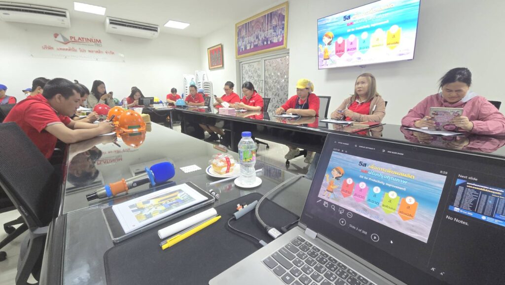 - การประยุกต์ใช้ 5ส ในกิจกรรมเพิ่มผลผลิตอื่น ๆ เนื้อหาโดยสรุป: อธิบายถึงเทคนิคการประยุกต์ใช้ 5ส เพื่อเป็นพื้นฐานของกิจกรรม SGA, TPM, KAIZEN, QCC และกิจกรรมเพิ่มคุณภาพในองค์กรที่พนักงานมีส่วนร่วมอื่น ๆ
